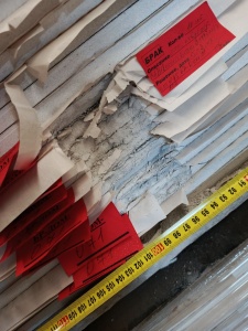 Влагостойкий ГКЛ, трудногорючий звукопроницаемый стеклохолст черного цвета, клей на водной основе.