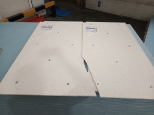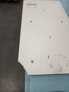Панели стыкуются между собой посредством пазогребневого соединения. Пазогребневые стыки дополнительно стягиваются между сбой саморезами по ГВЛ 3х25 мм, шаг саморезов 150 мм. При замыкании ряда панель может подрезаться, при этом подрезанная часть переходит на следующий ряд. Раскраиваются панели при помощи электролобзика, слой стеклохолста обрезается острым ножом.